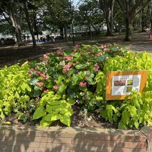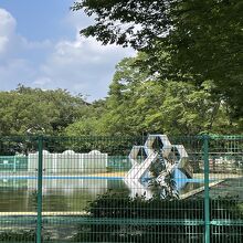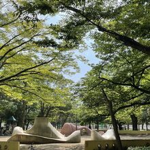 成田街道沿いに郷土資料館がありその裏側にスポーツのできる自由広場、噴水広場、おもしろいおすべり台のある遊戯広場、ステージ広場、コロナで利用できませんが、徒歩池、菖蒲池などが広がる大きな公園です。桜の季節はとてもきれいです。木が多いので、夏も木陰を歩くことができます。すぐ近くに薬円台高校や薬円台小学校があります。