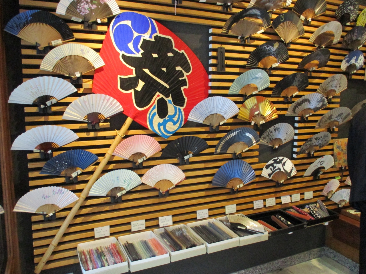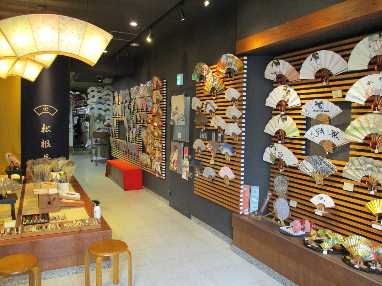 浅草橋を散歩していて、扇子の専門店があったので、珍しいと思い立ち寄ってみました。店内には様々なデザインの扇子が並んでいて、見ているだけで楽しくなるお店でした。専門店だけあって、店内の照明器具も扇型のデザインで面白かったです。