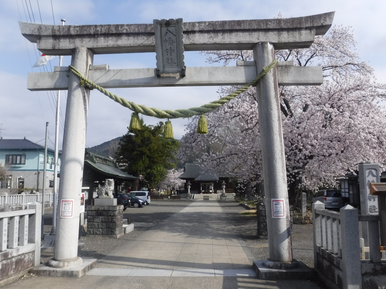 鳥居から本殿まで桜が咲いていて綺麗でした