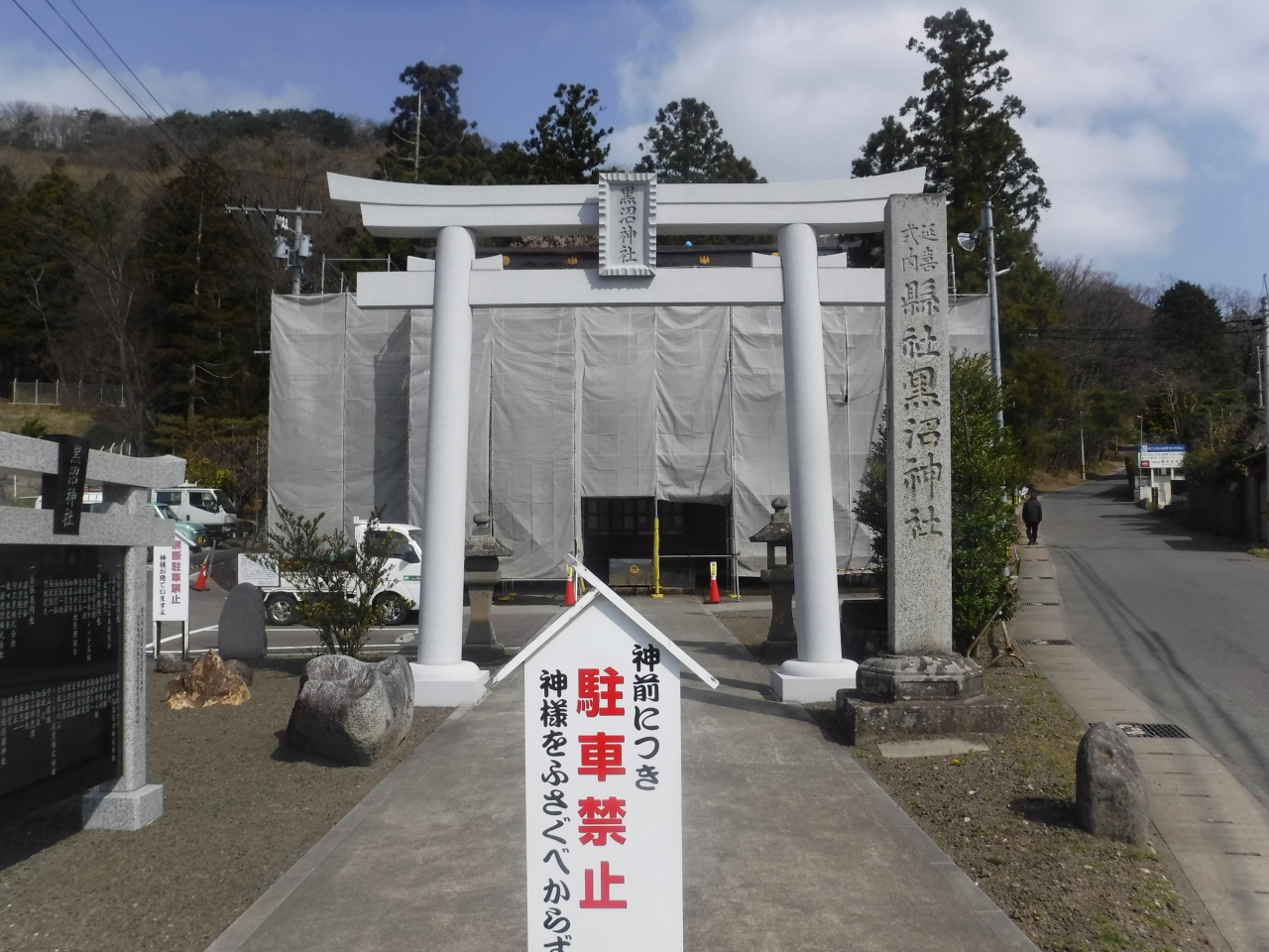 看板に「駐車禁止 神様をふさぐべからず」とありましたが