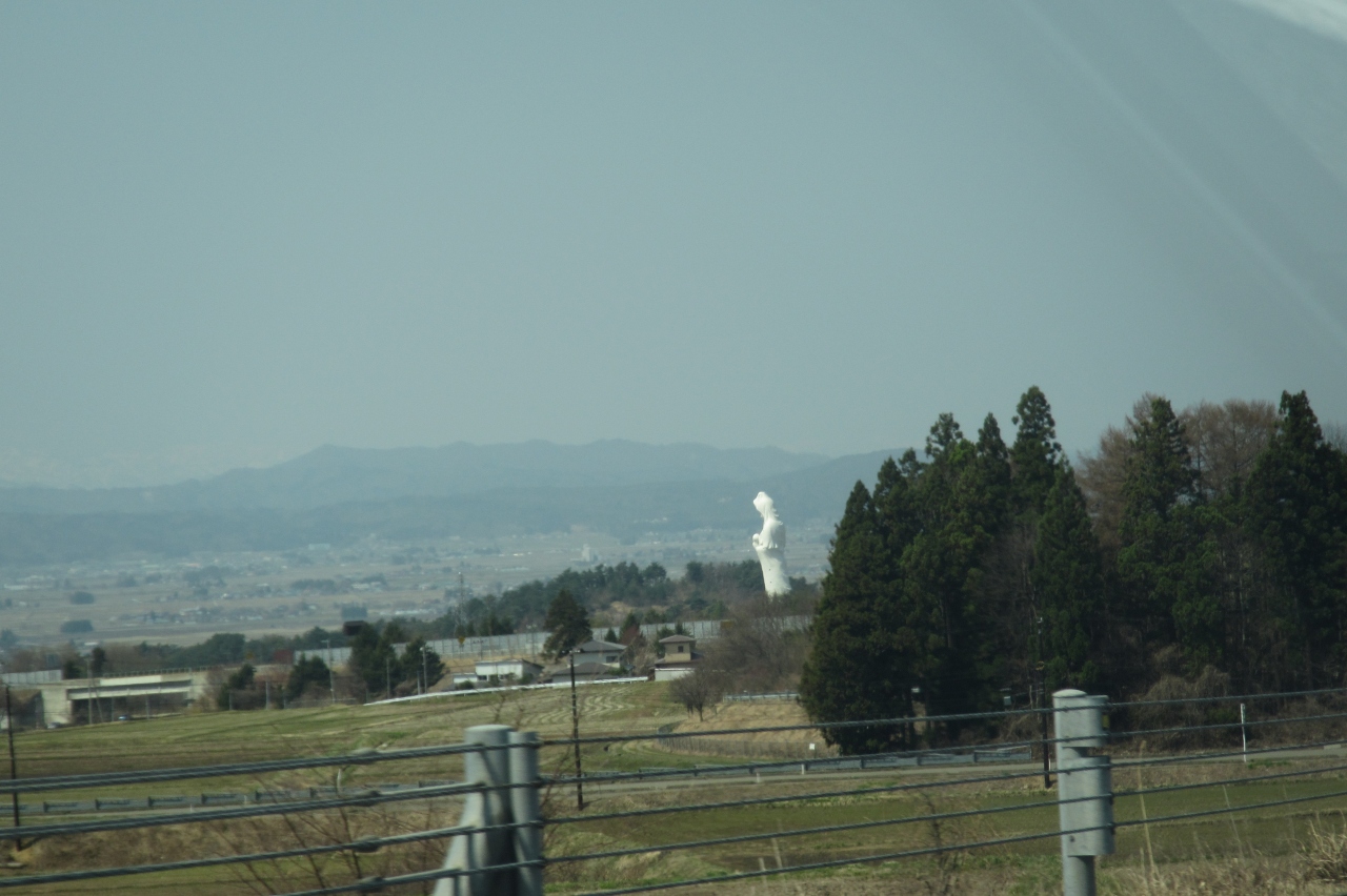 猪苗代湖周辺あたりで突如白い観音像が見えてきます