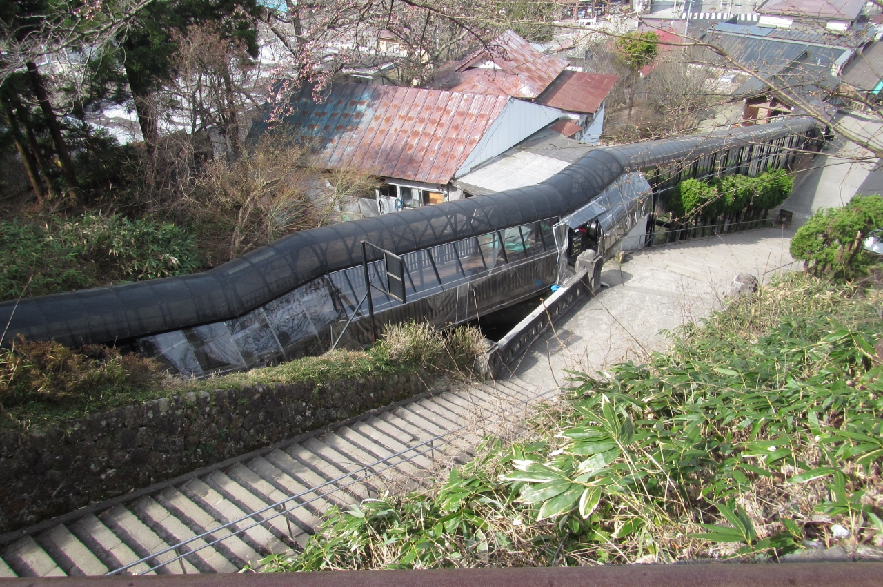 屋根付きで上から見ると蛇腹の巨大なホースのようです