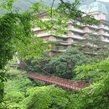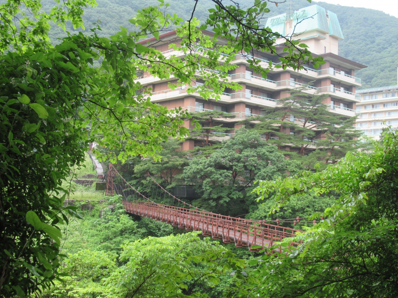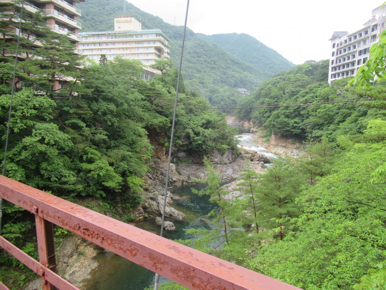 鬼怒川の温泉街にある橋ですが、鬼怒川温泉駅から歩くと結構な距離があります。鬼怒川公園駅からは近いです。駅からの通りを歩いていたら、滝見橋の看板があったので、それに従って急カーブな階段を下ると、こちらの吊橋がありました。鬼怒川の両岸から鬱蒼と茂る緑の中にこちらの吊橋があって、とても風情がありました。ちなみに、滝見橋という名前ですが、滝は見当たらなかったです。