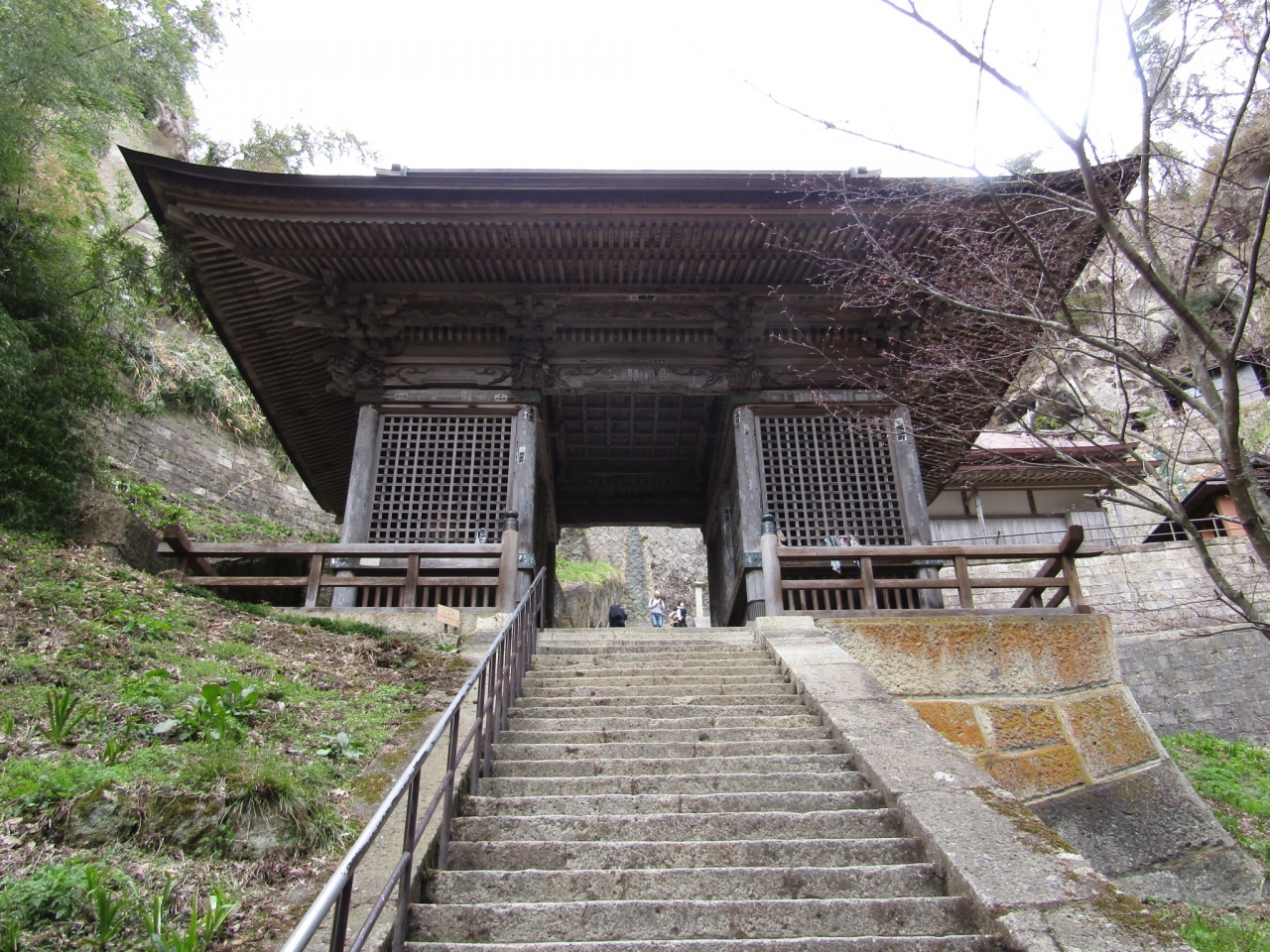 立石寺奥の院までもう少しという地点にある入母屋造りの八脚門で、左右に安置されている仁王像は運慶の弟子たちの作と言われています。