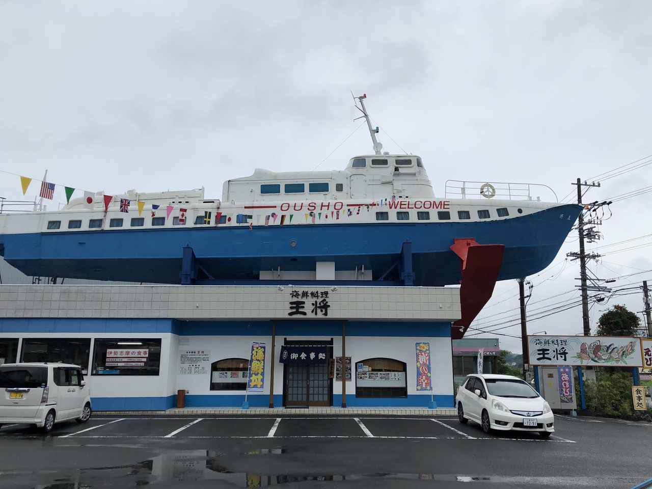 伊勢志摩のあたりを走っていると、たまに目に入る「おみやげセンター王将」の看板。
