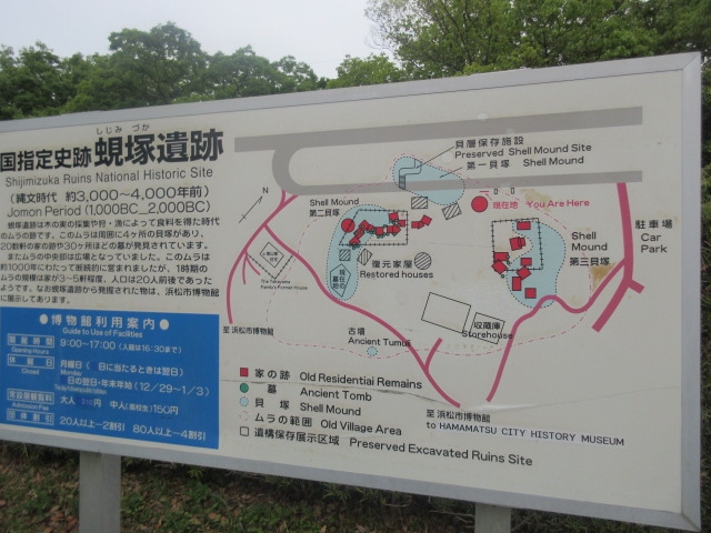 浜松にある遺跡です。車でアクセスしましたが、駐車場もあって便利でした。公園のようになっていて、自由に見学できるようになっています。縄文時代の遺跡だそうで、住居の復元とかがいくつもありましたので、楽しいです。貝塚の遺跡もあります。近くに博物館もあるので、セットで見学するといいです。