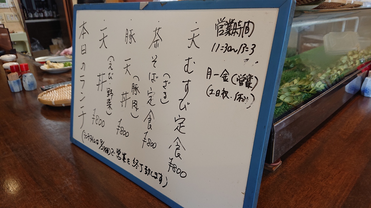 ランチタイムに訪問。4種類のメニューの中から、豚天丼を選択して注文しました。実際に食べてみると、衣はサクサク、肉も結構なボリュームで、豪快な天丼だと感じました。さらに、副菜として出された煮物も適度な味付けでおいしく、全般的に満足でした。