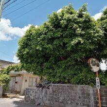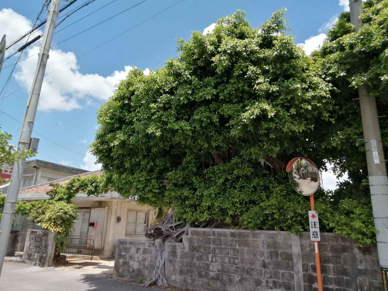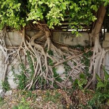民家のブロック塀を侵食している巨木です。塀を這う根には自然の力、みなぎる生命力を見せつけられます。空中に伸びる幹も圧巻です。推定樹齢は200~300年とのことで主幹の一部が朽ちているのも神秘的な雰囲気を醸し出しています。B級観光スポットの部類ですが、市街中心部の住宅街にあり、立ち寄りやすいと思いますのでぜひ…。