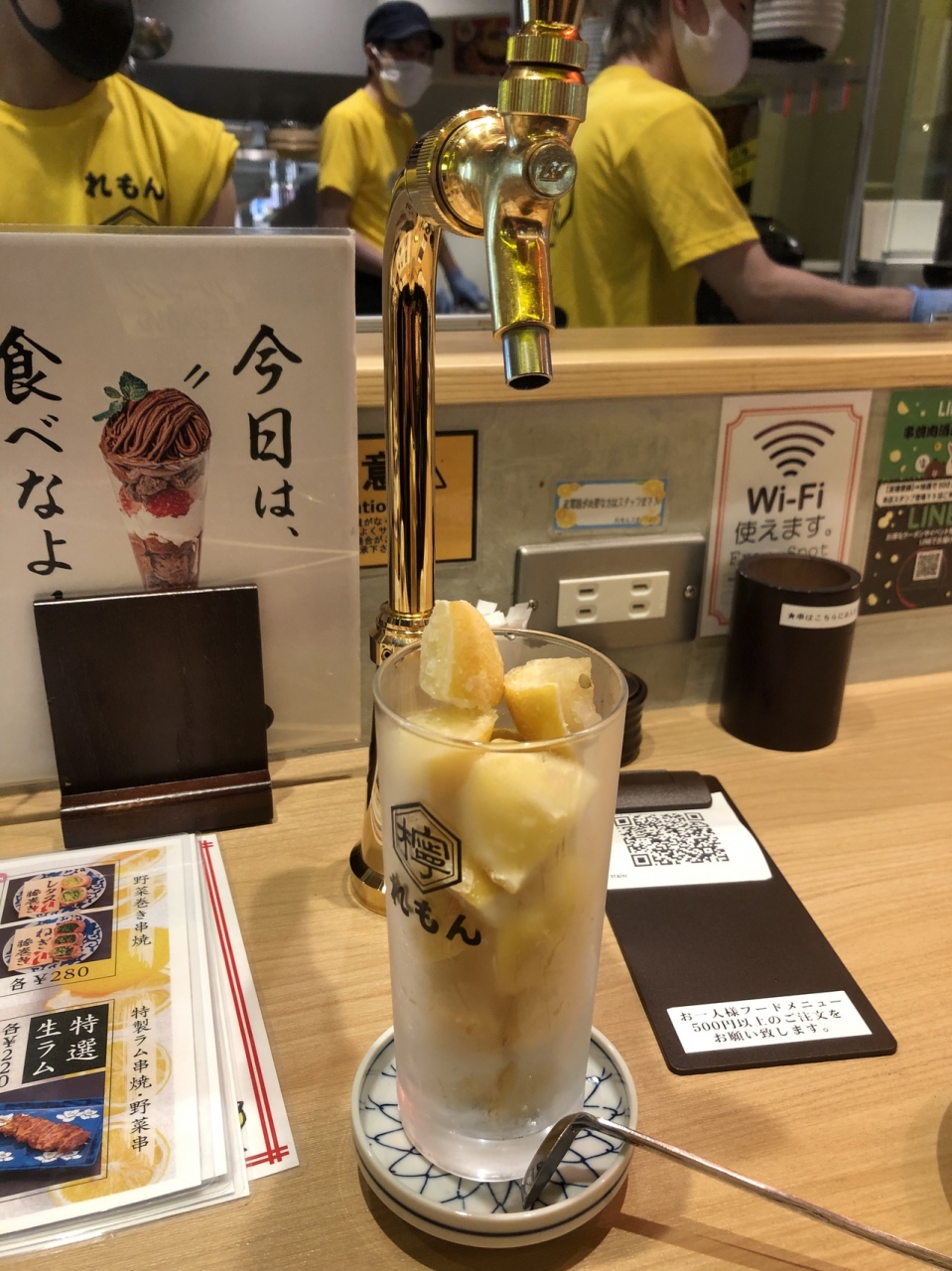 すすきの南5西4にある串焼き店。外観がお店を間違えたかというくらいのカラーで、店内はカウンター席メインでテーブル席もあり。札幌市内の系列店と同じく、テーブルにレモンサワーのサーバーがあり、500円で1時間飲み放題。レモンやみかんなどの追加トッピングを行う。自由に飲めるのは嬉しいが、飲み過ぎに注意。万が一の場合の罰金システムがあります。