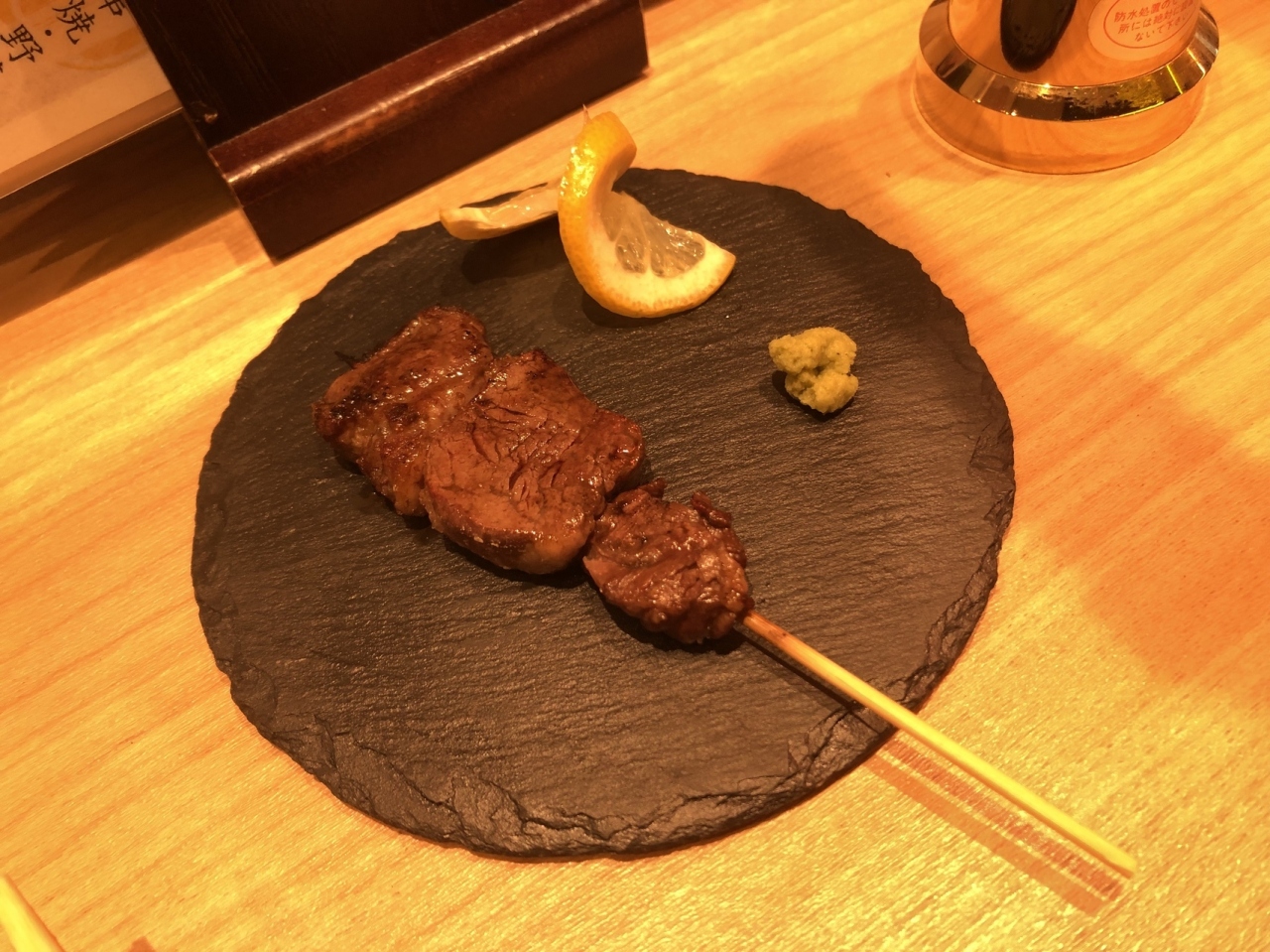 料理は串焼きがメイン。オススメのヒレの串焼きは600円と少し高めですが柔らかく美味。その他串焼きは100円台がメイン。思ったよりも本格的で、一串ずつ丁寧に焼いている。ややお肉がパサパサしている感じましたが、味付けは良くコスパは良い気がした。〆に冷麺も食べましたが、質素でノーマルですが美味でした。