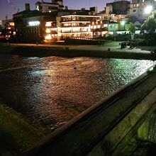 三条通で鴨川を渡る際に通る橋です。最初に橋が架けられたのは、室町時代らしいとのことです。11月上旬の18時前に訪問しました。辺りはもう、ほぼ暗くなっており、橋の上の歩道で立ち止まると、綺麗な夜景を眺めることができました。