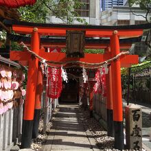 露天神社にある末社の一つです。明治42年に起こった北の大火により、近隣に祀られていた四社の稲荷社を境内に合祀しました。五穀豊穣や商売繁盛のご利益があります。現在の社殿は、一部修復工事が施されましたが往時のままとのことです。大きくはないですが、赤い朱塗りが綺麗でした。