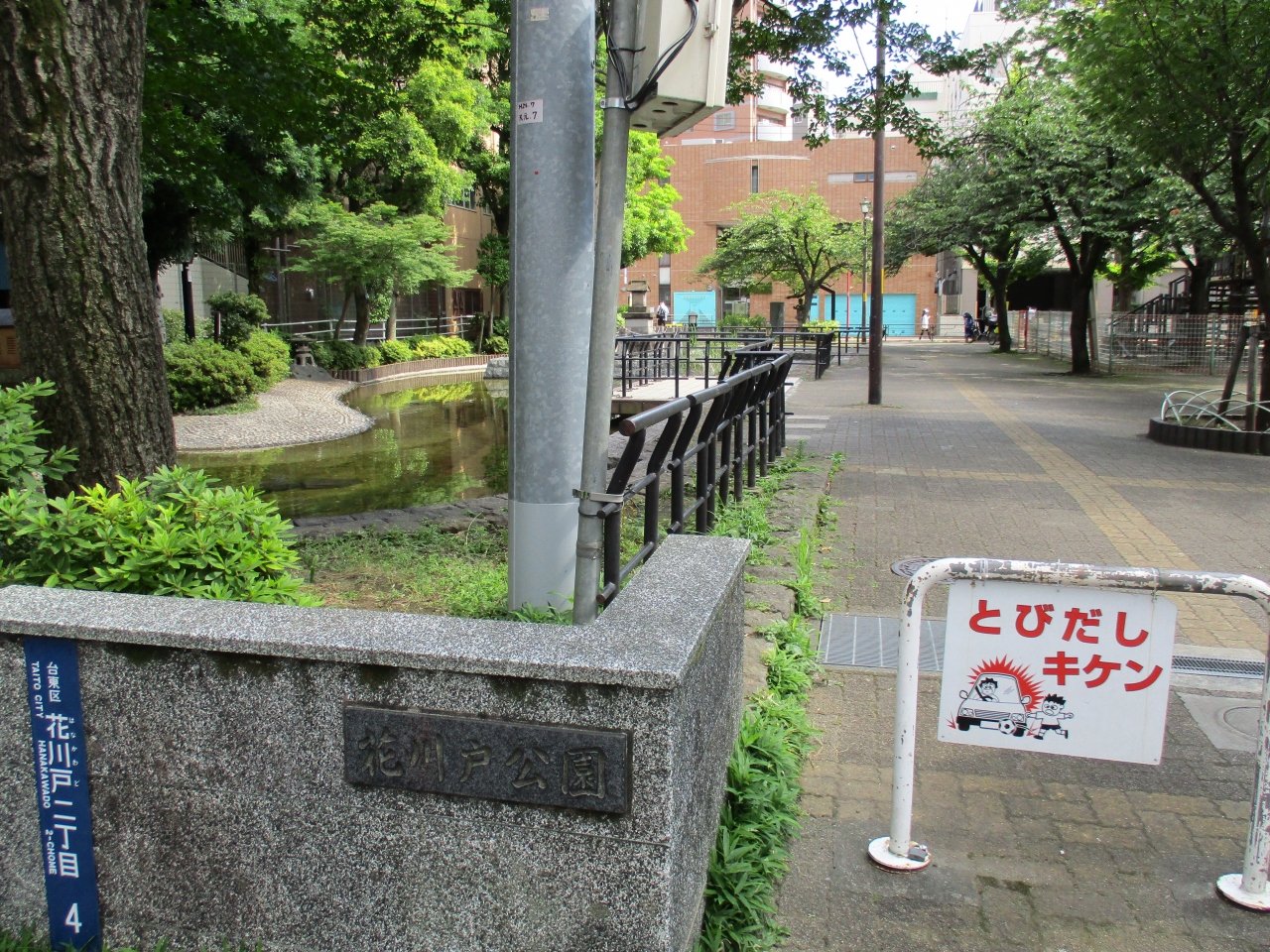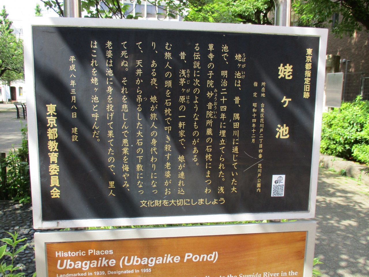 浅草の花川戸近辺を散歩していて、花川戸公園の中に石碑が立てられていました。昔は近くの隅田川に通じている池があった跡の石碑でした。恐ろしい話が池の名前の由来になっているそうですが、今は池もなく平和な公園になっていました。