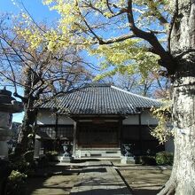 本堂前の大イチョウと枯山水風の小さな庭が目立ちます。