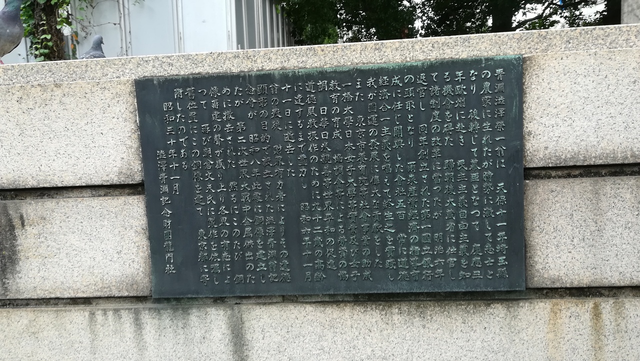 昔から何度も通っていましたが、日本資本主義の父、渋沢栄一さんの銅像とは知りませんでした。日本銀行からも程近い場所です。