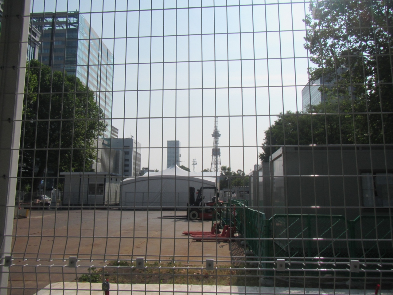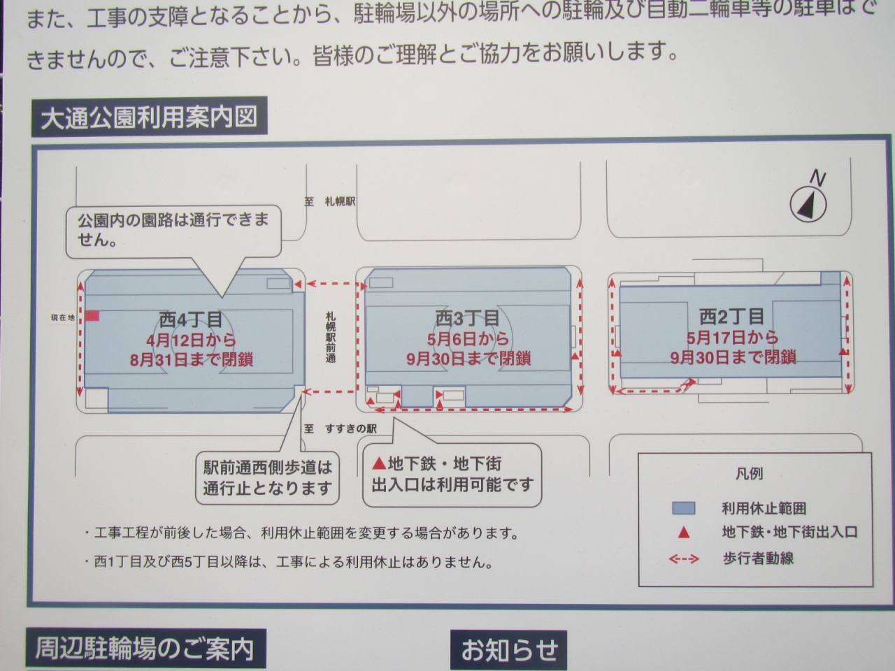 もっとも、大通公園の西2・3・4丁目のエリアは高いフェンスで囲まれてほぼ封鎖されていて、金網の外側からテントや工事の状況を眺めるくらいです。