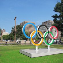 西10丁目エリアまで行くと、芝生上にオリンピックの五輪モニュメントが建っているので楽しめるかもしれません。