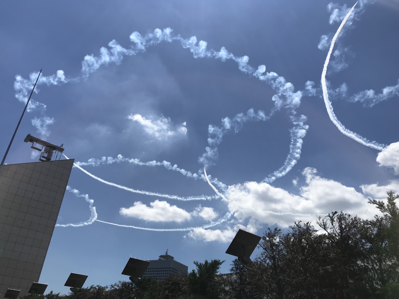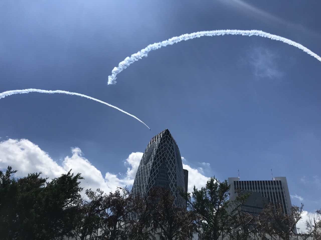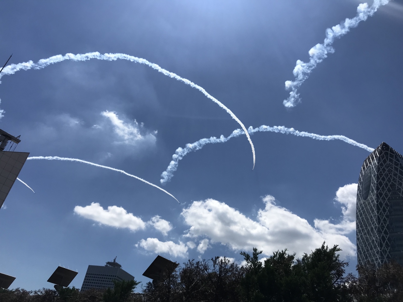 明後日の開会式には、ブルーインパルスが五輪の飛行機雲も披露する