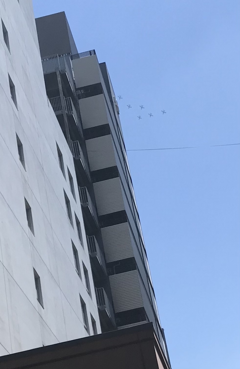 多分空自入間基地から飛んだ飛行隊が、色はつけないけど五輪雲を