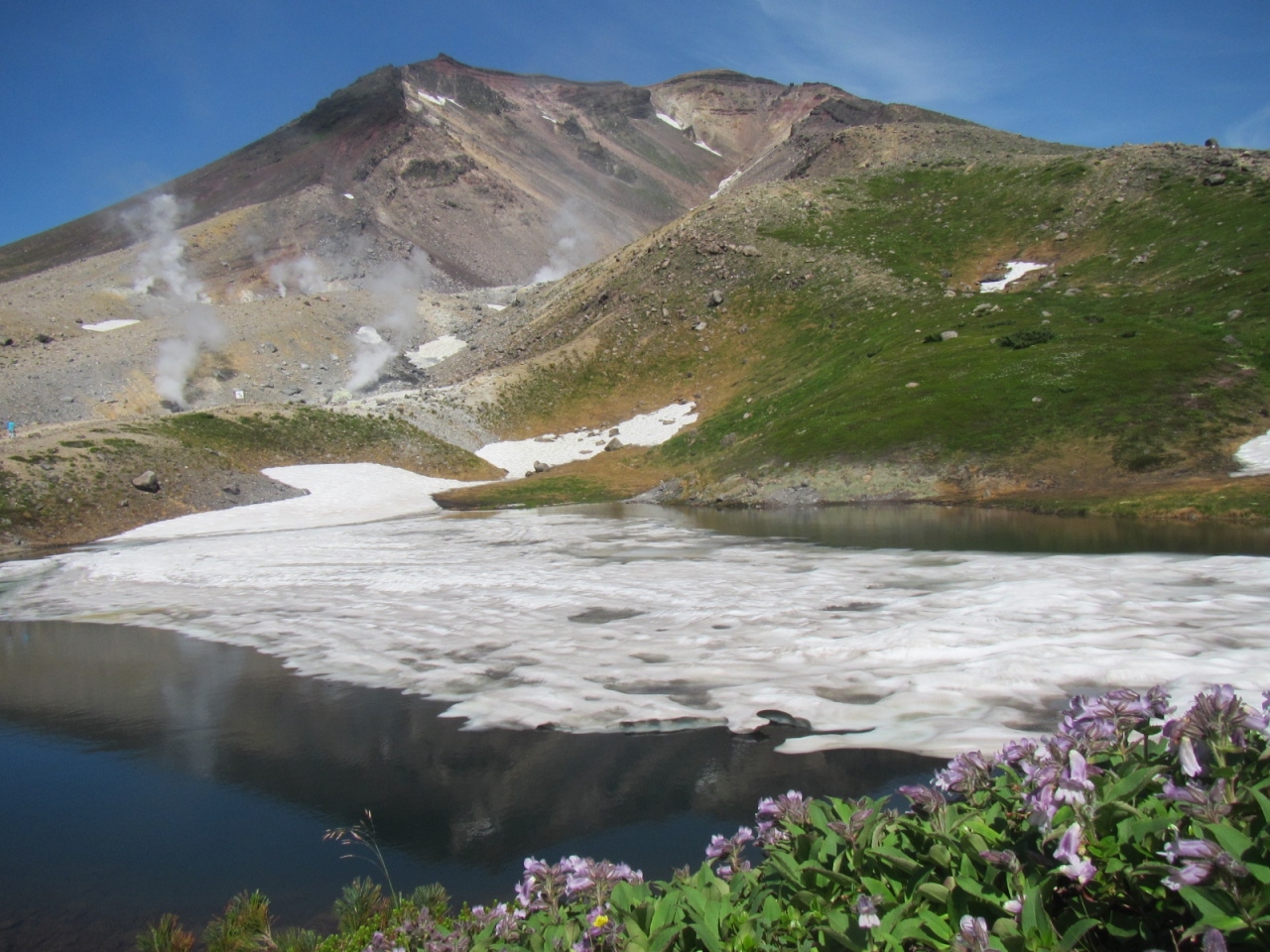 7月中旬に訪れたところ、姿見の池周遊コースの雪は、一部を除いてほとんど解けていて、姿見駅を出てコース右側のコース途中にはチングルマの群落が花を咲かせていてきれいでした。