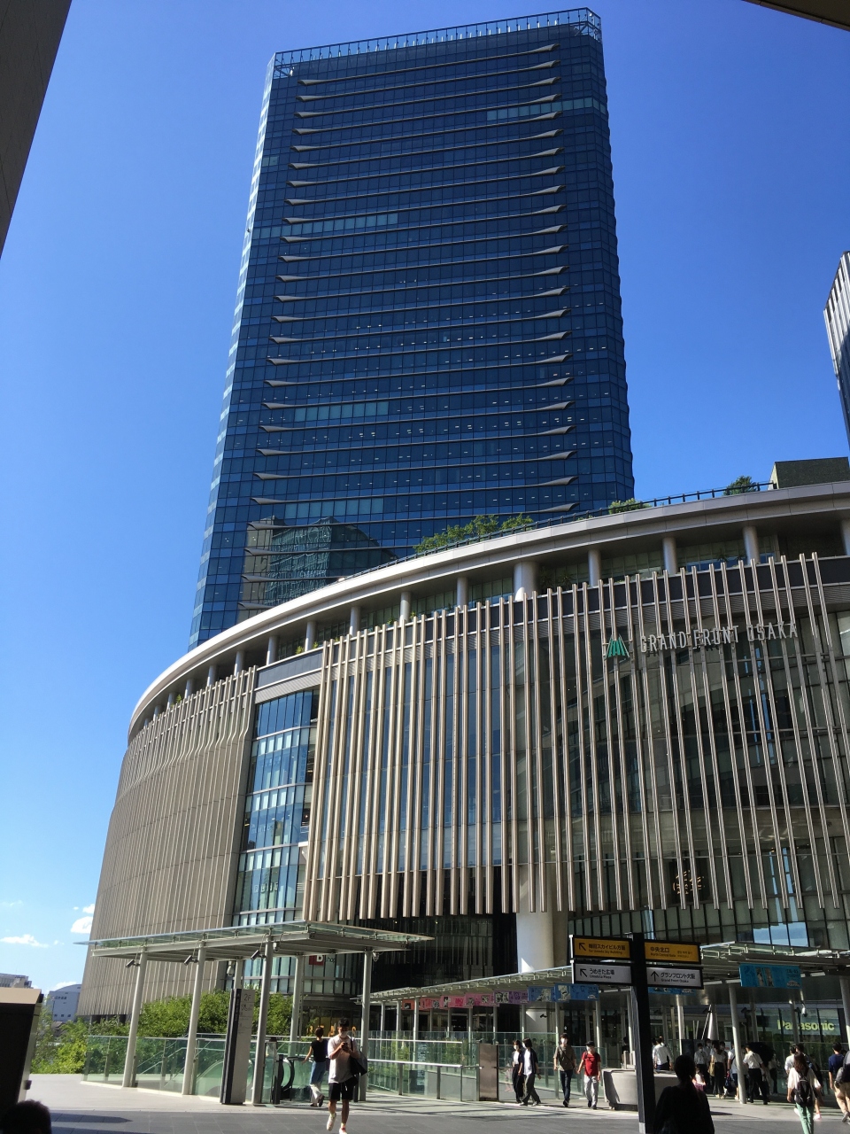 JR大阪駅の北側にある吹き抜けの広場です。両側にルクアやルクア1100の入口もあり、グランフロント大阪への連絡通路にもなっています。どこへ行くにもここを経由すると便利なこともあり、1日中多くの人が行きかう場所となっています。高さもあり開放的な空間の正面には光時計が置かれています。