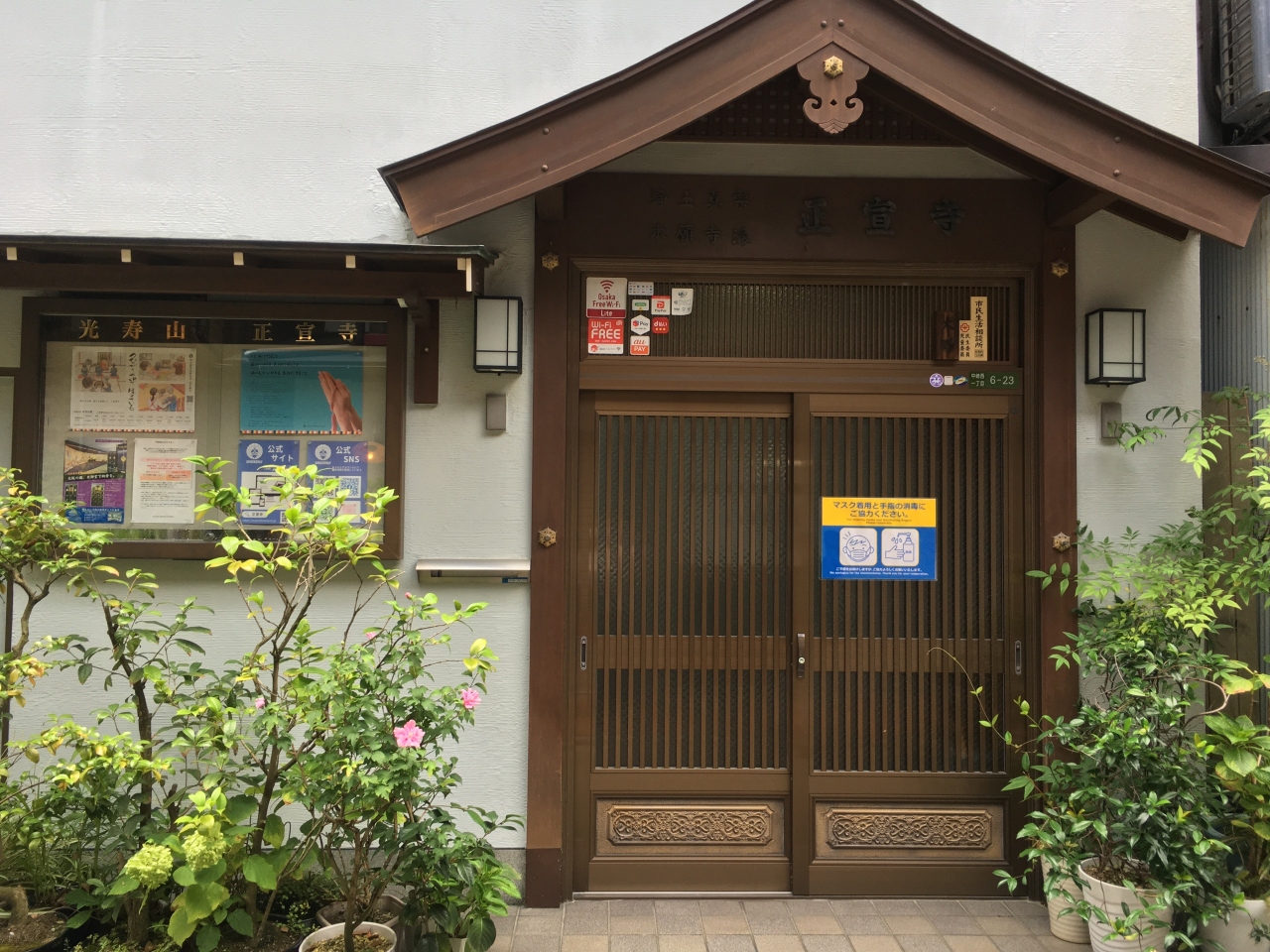 昭和初期の建物が残る風情のある中崎町にあるお寺です。一見して普通の民家に見えるのでお寺とは気づきにくいです。1940年に開設された北野布教所を前身とし、1988年に正宣寺として新築再建されました。大阪市北区内の浄土真宗本願寺派(西本願寺)寺院としては最も新しいそうです。各種法要や地域に密着した活動もされているようです。