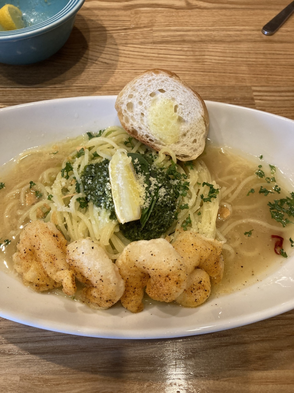 ボンゴレモンを注文した友人は美味しかったようなので、この有名になったえびジェノパスタ(しかもせっかく生パスタを選択したのに)が私の口に合わなかったと言うことでしょう。