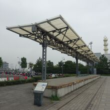 赤レンガパークのすぐ近くに「旧横浜港駅 プラットホーム」があります。案内板によるとかつて東京駅からこの場所まで、汽船連絡列車が走っていたそうです。鉄道ファンとしては、この場所まで蒸気機関車がけん引する客車が乗り入れていた光景を想像するだけで楽しいです。