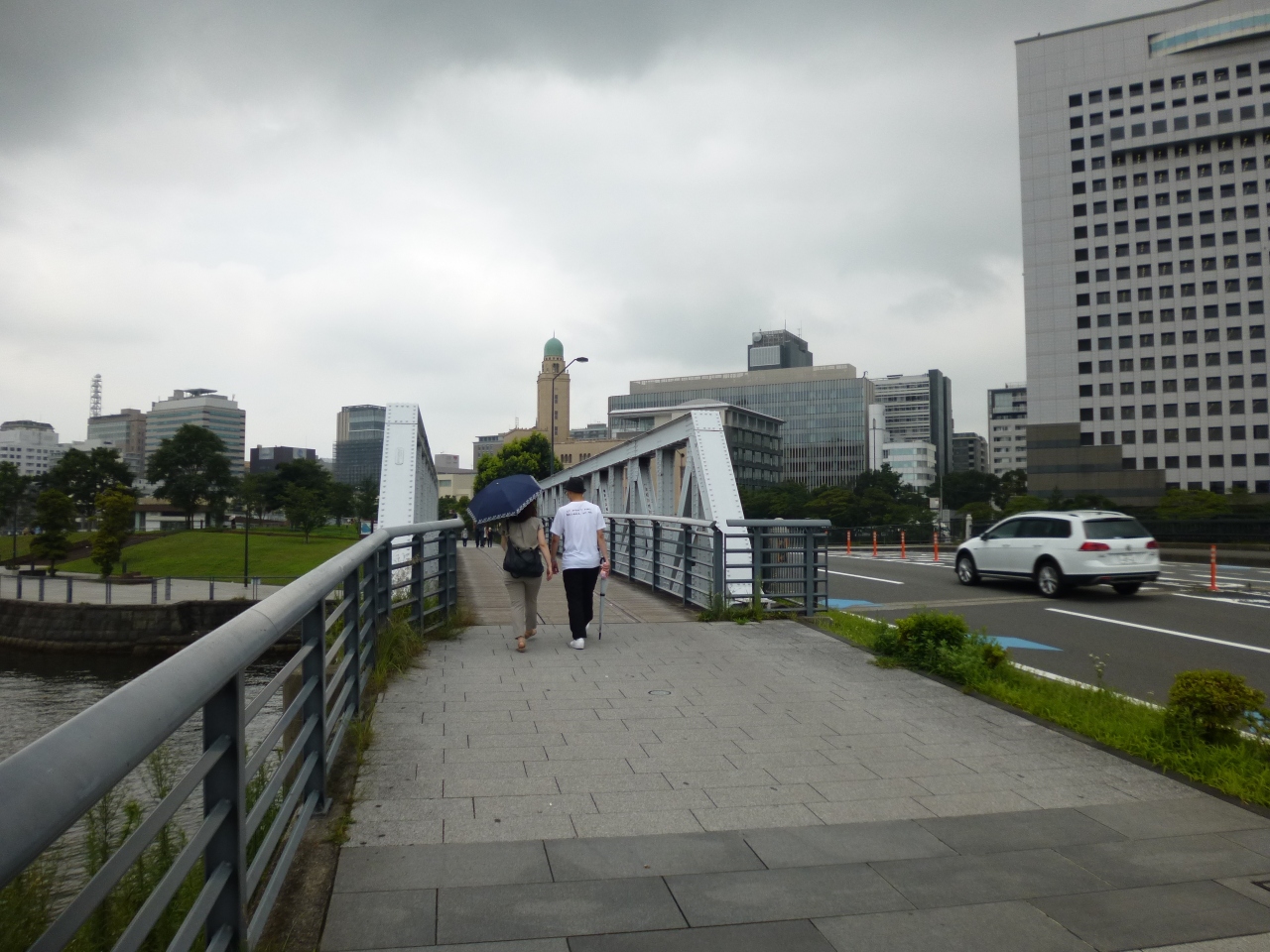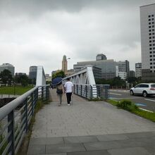 赤レンガ倉庫と象の鼻パークを結ぶ短い橋が「新港橋」です。一見、変哲もない橋ですが、橋梁に挟まれた歩道部分は板敷になっており、線路の姿も見えます。かつてこの場所に鉄道が走っていた名残で、新港橋梁は横浜市の歴史的建造物に指定されています。
