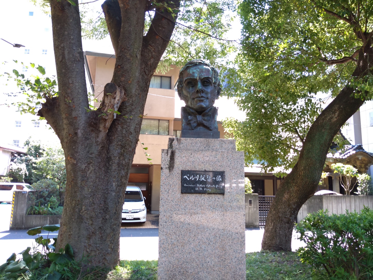 増上寺の東側にある南北に長い公園の中にあります。教科書には、ペルリではなくペリーと出ていたので気が付きにくいのですが、江戸時代にアメリカから船で渡ってきた人です。このすぐ近くに遣米使節記念碑(日米修好通商条約)があるのであり思い出しました。