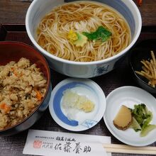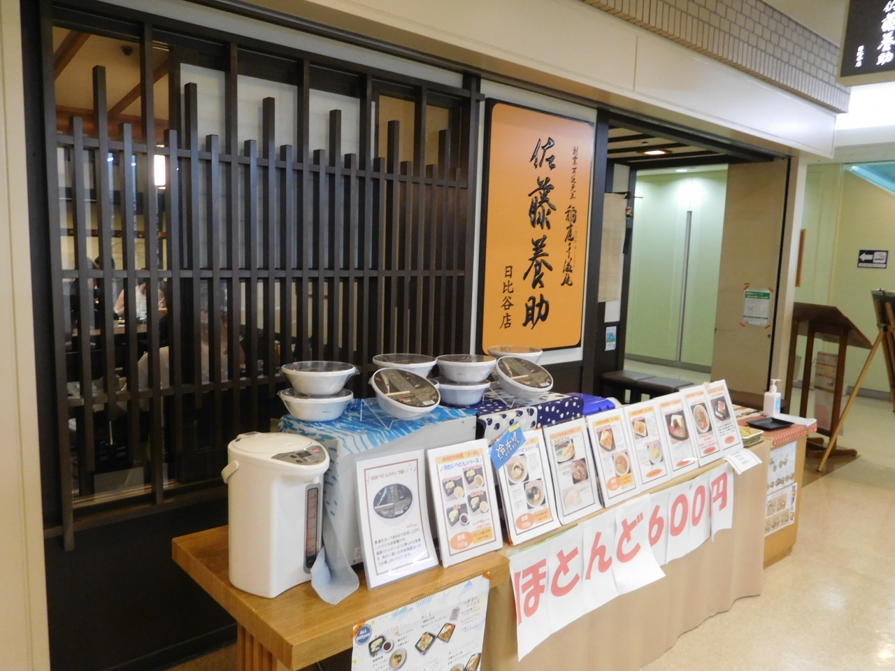 日比谷シティの隣にある、オフィスビル「日比谷セントラルビル」の地下1階にある、秋田県の稲庭うどんのお店です。ランチタイムの比内地鶏ご飯と、温かい稲庭うどんのセットを注文しました。細めのうどんでさらっと食べやすく、美味しかったです。ランチタイムは麺の大盛も無料のようでした。