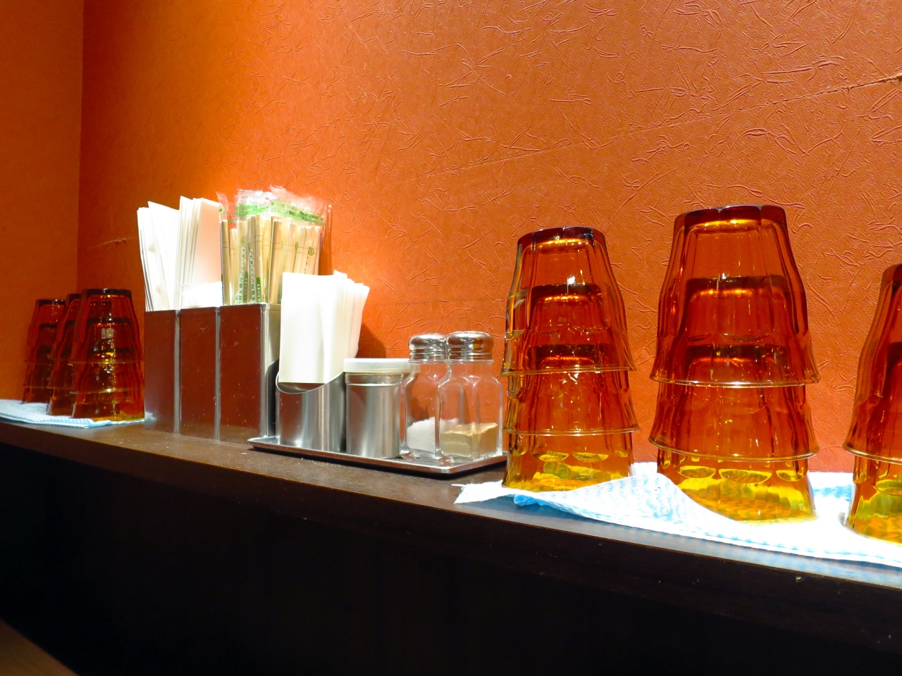 入り口にある券売機で食券を購入する注文スタイルです。フロアは1階と2階にありますが、昇降は階段のみ。1階はカウンター席のみですが、2階にテーブル席があります。一方で1階のテーブル席の座椅子の高さがやや高いため、車椅子等の障碍を持つ方にはやや利用しづらい印象を持つかもしれません。
