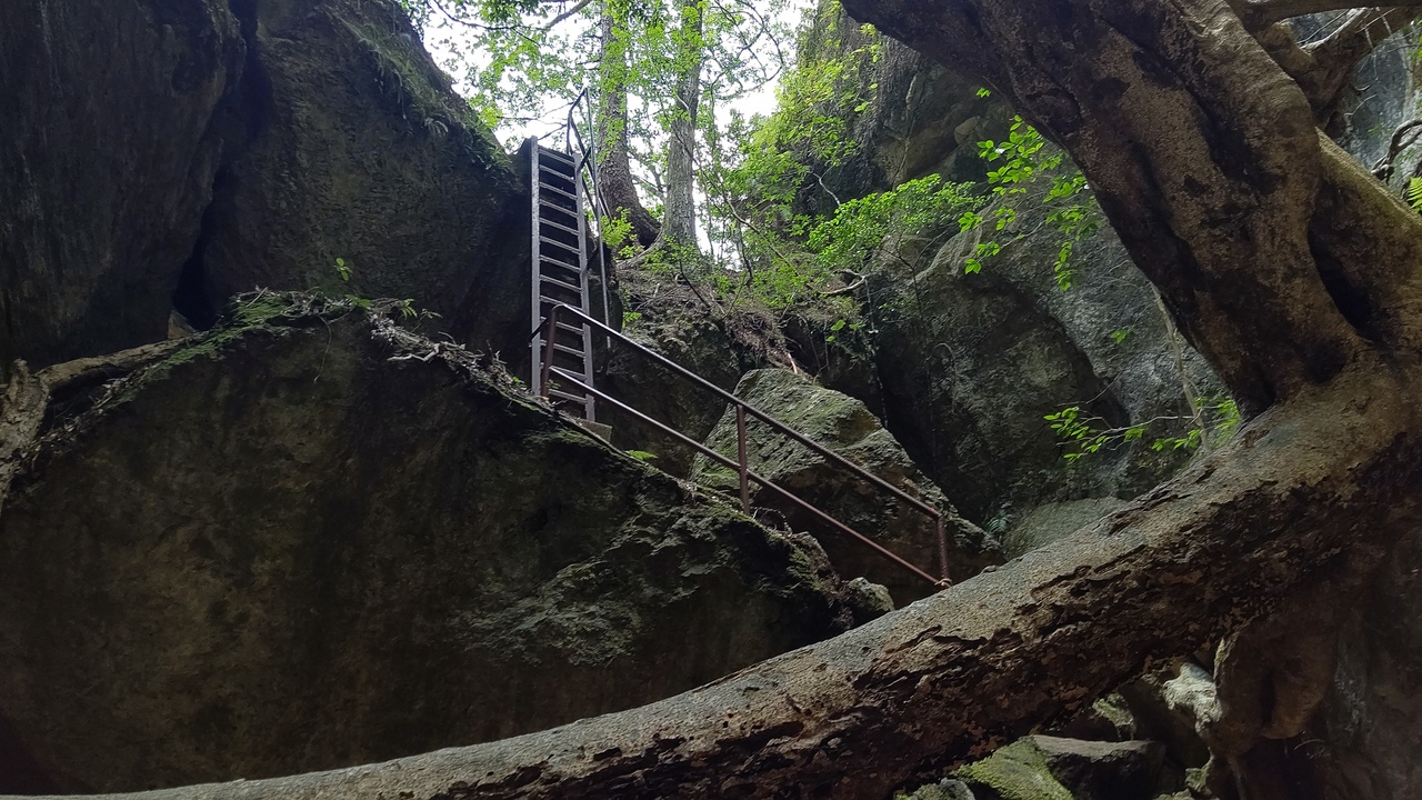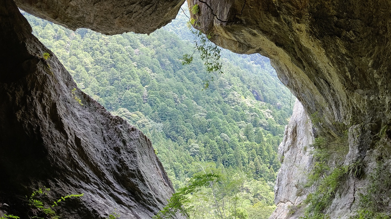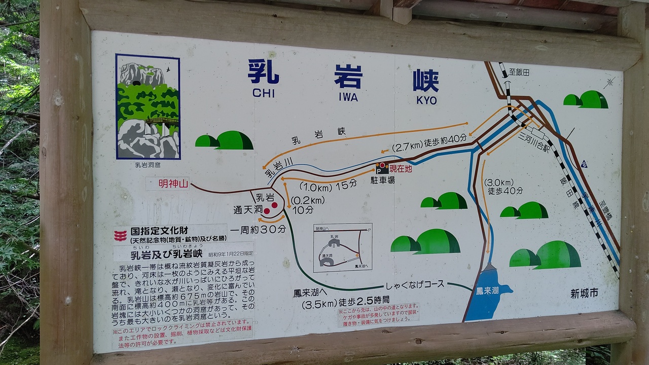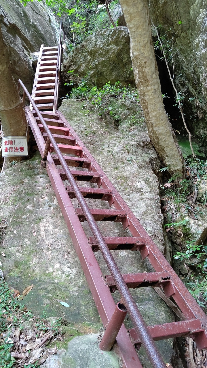 奥三河にある秘境。駐車場の規制により、一番近い駐車場でも入口まで1.2㎞歩きます。そこからが大変。川沿いの岩場を歩くと、次は山道。滑りやすい岩や木の根っこなど悪路の連続。最後は直角に近い角度のはしご。しかも錆びつき、所々は破損。探検隊員の気持ちを味わえます。にもかかわらず好評価なのは絶景を味わえるから。すごく大袈裟にいうと、青い水場は九寨溝(中国)、垂直のはしごは劔岳のカニのタテバイ、通天門は張家界の天門山(中国)、乳岩洞窟はバトゥケイブ(マレーシア)のよう。(イメージで言っています。いずれも訪問してません)。駐車場から3時間の冒険タイムでした。若い子、特に女の子が多かった印象です。たくましいわー。