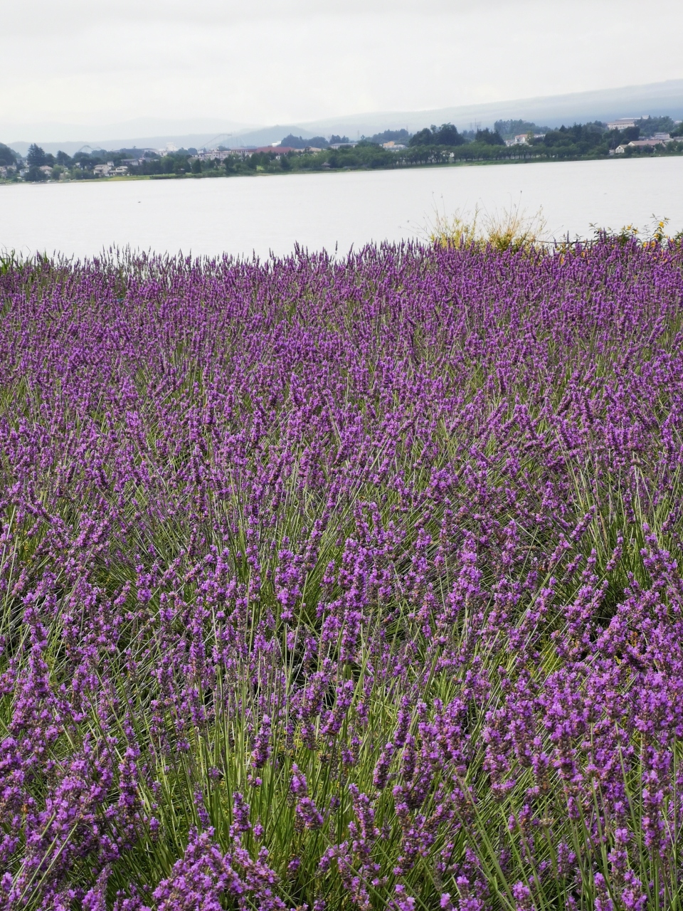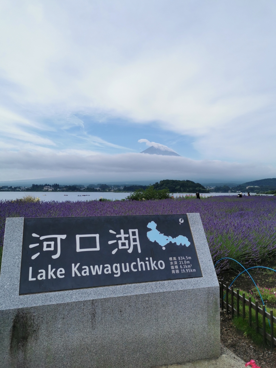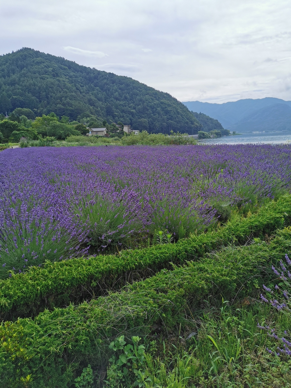 河口湖一周ドライブの途中で大石公園に立ち寄りました。駐車場は無料ですが早朝にもかかわらずかなりの車でした。富士山を一望できる素晴らしいロケーション。ラベンダーの紫色が映えますが、まだ2部咲きでした。トイレも売店もありますので半日ぐらいはのんびり出来そうな良い場所です。