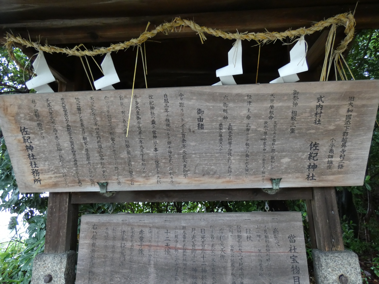 奈良市佐紀町小字西畑に鎮座する神社で旧社格は村社です。平城京跡の第1次大極殿の北側で周辺地域の氏神とし崇められています。御祭神は経津主命・天児屋根命・六御縣神の三柱で、一間社流造の檜皮葺き本殿が入母屋造本瓦葺き拝殿の奥に建っています。神社前の通りは古墳群と平城京跡を結ぶルートとして歴史の径になっています。