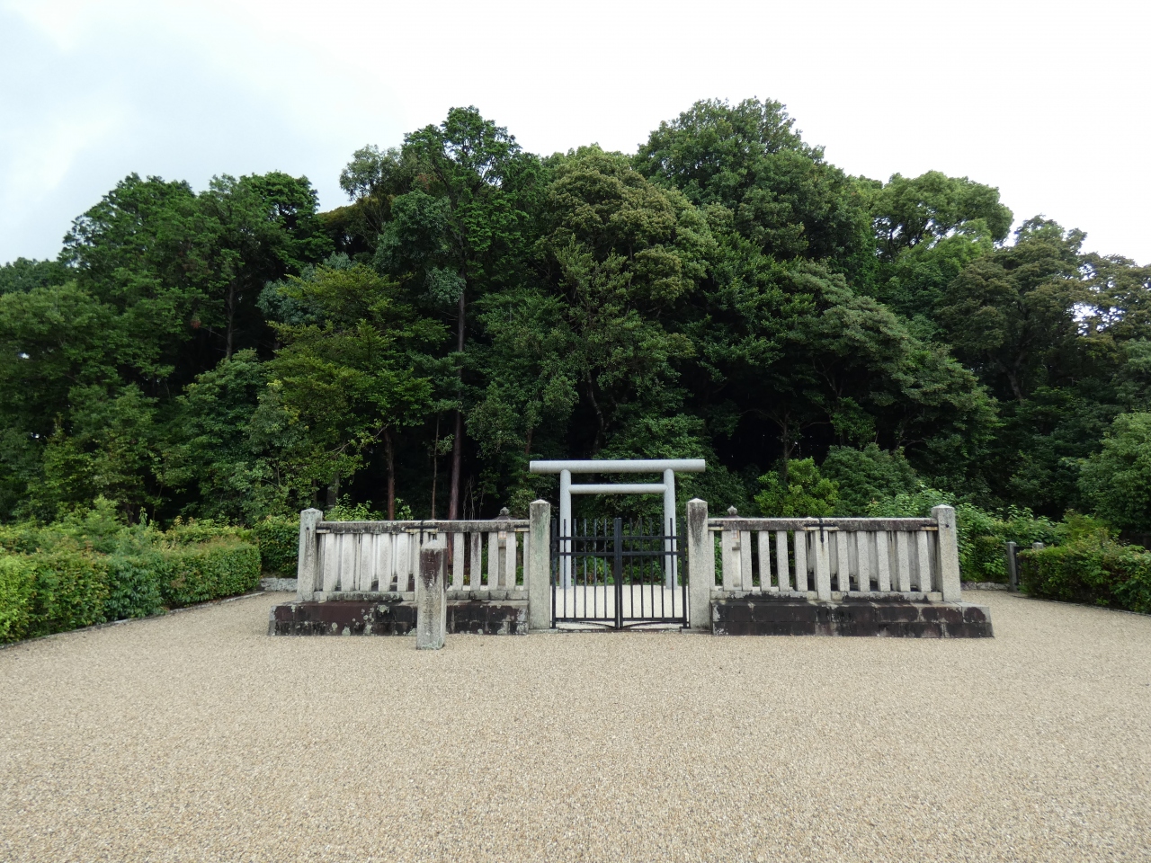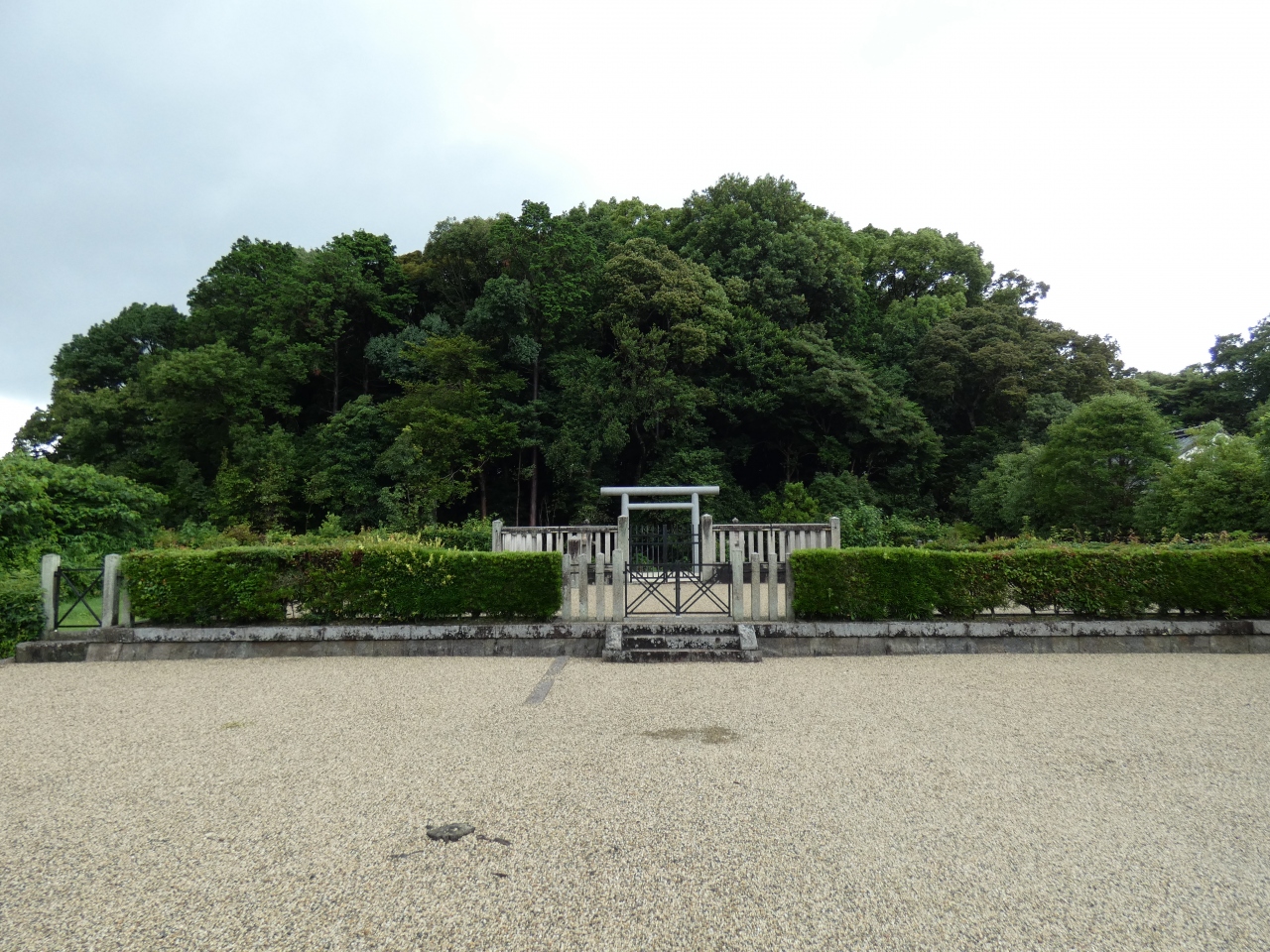 平城京跡の第一次大極殿の北側、佐紀町にある第51代平城天皇楊梅陵です。元は全長253mの墳丘であったが平城京建設で前方部が削平された後円部のみの前方後円墳。佐紀楯列古墳群の一つで、古墳時代中期前半(5世紀前半)の築造と推定されています。平安京遷都をなした桓武天皇の次の天皇陵と治定するのはおかしな話です。
