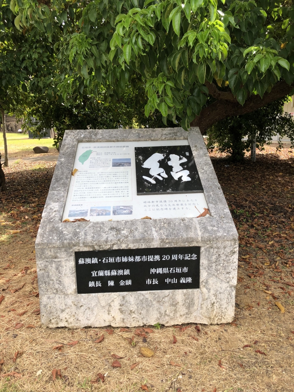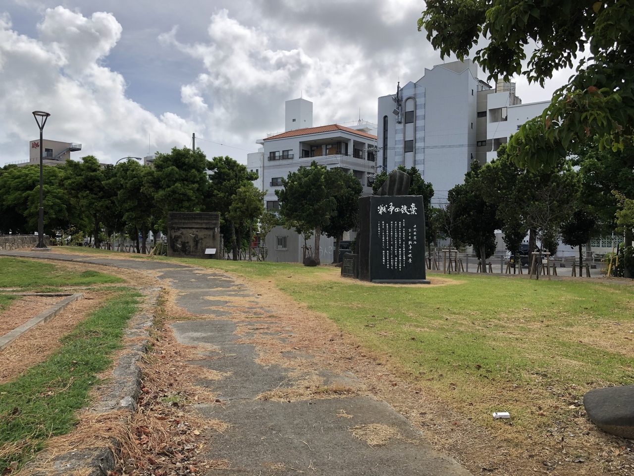 離島ターミナルからすぐのところにある大きな公園。ブランコや滑り台などの遊具や、懸垂、筋トレ用具、サッカーの練習もできる大きな広場、ジョギングやウォーキングのできる専用街などもある、多くの市民が利用する公園で、広々とした芝生もあるのでのんびりしている雰囲気。「オリオンビアフェスト」や「石垣まつり」と言った大きなイベントでも使われる公園で、2つの平和都市宣言の碑や世界平和の鐘が設置されています。