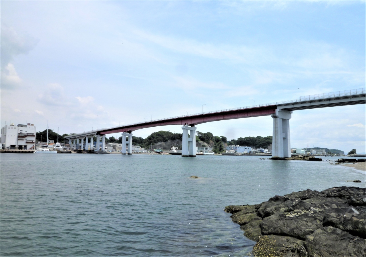 城ヶ島大橋を車で渡って城ケ島に入りますが、今回は三崎港産直センターと城ヶ島から`城ケ島渡し船`から見た/見上げる<城ケ島大橋>です…三崎町と城ケ島を結ぶ大橋がはっきりと見えます/一望できます♪ 途中で海上釣堀/フィッシング埠頭で立寄りますが釣堀越しに見る大橋/最終地の白秋記念碑埠頭で見上げる大橋も、車では見えない大橋でした(^^)