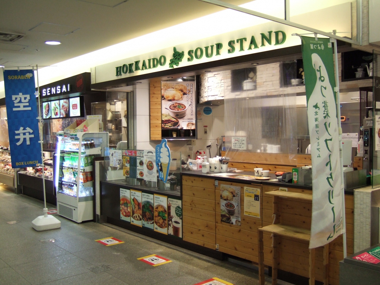 新千歳空港国内線ターミナルの2階にある、北海道の素材にこだわったスープのお店。ソフトクリームもあります。