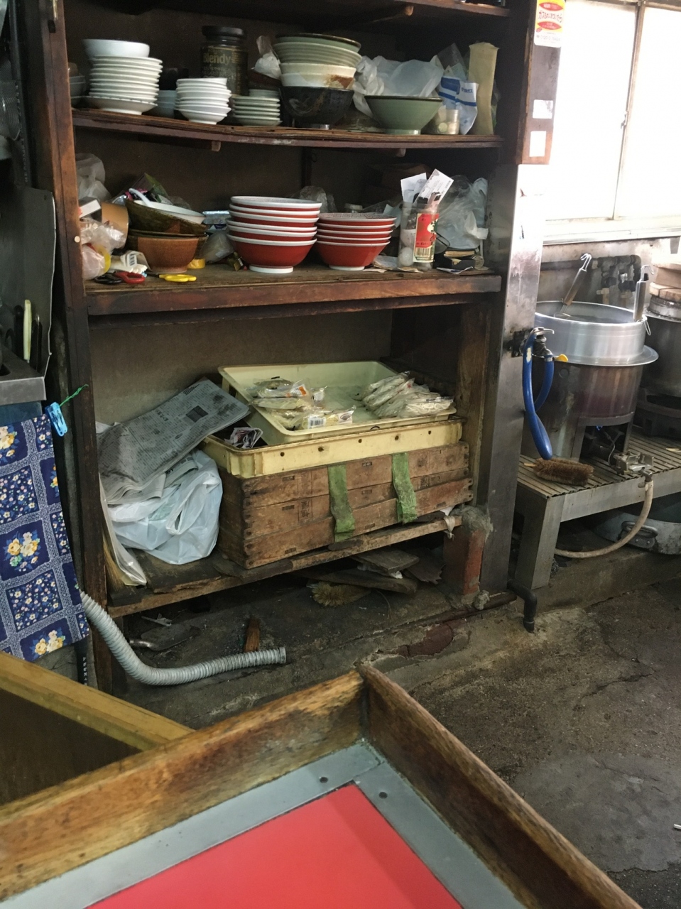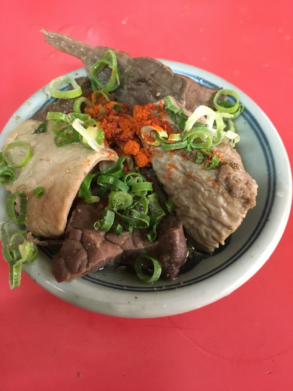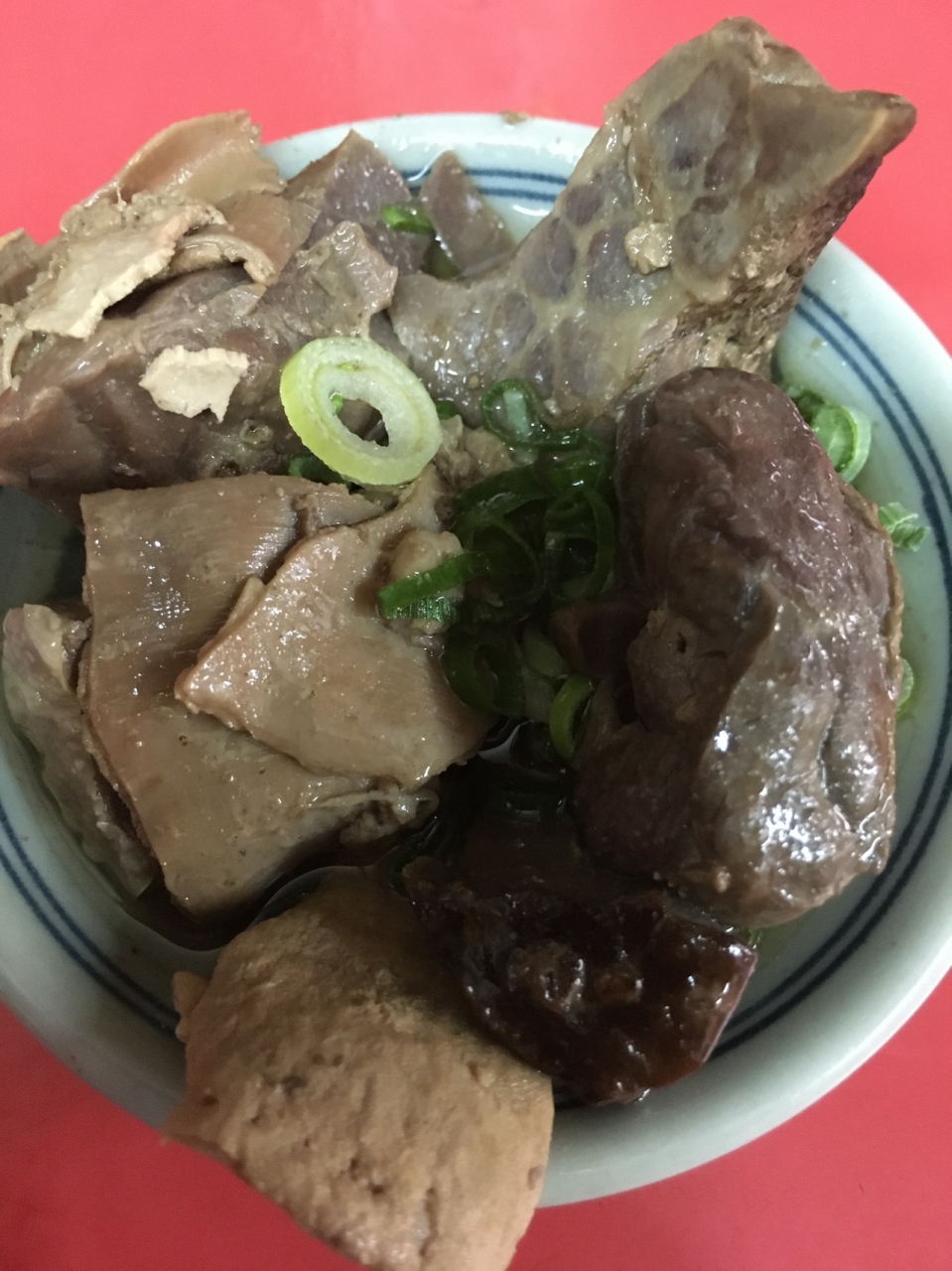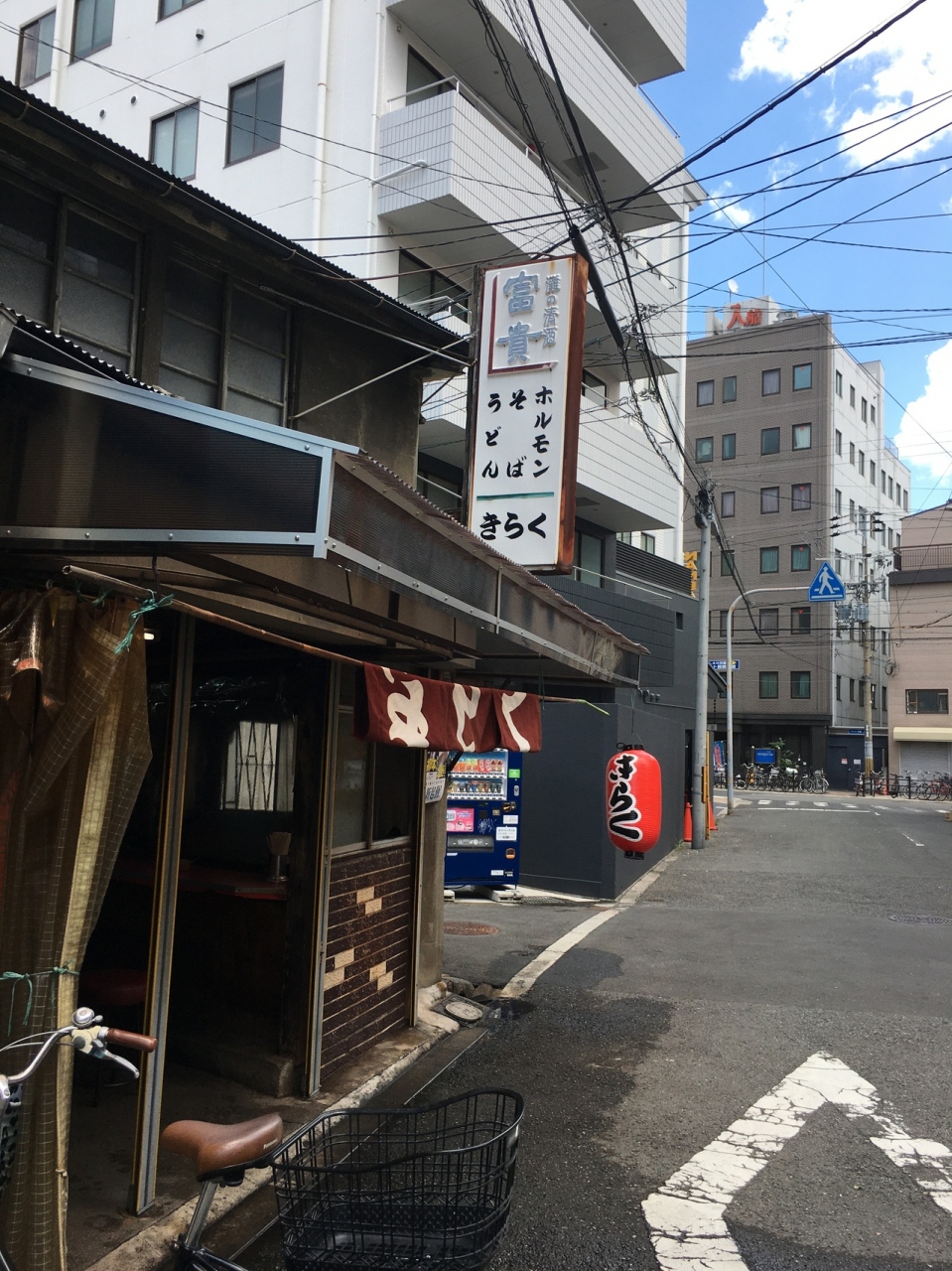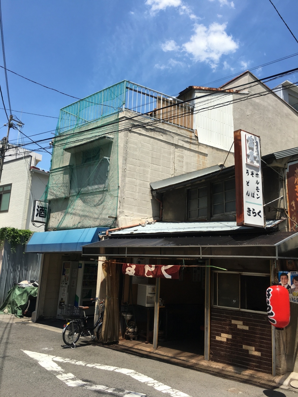 昭和時代から営業しそうな古びた味わいがある佇まい店でした。店頭の赤い提灯のみがやけに新しく感じました。エアコンがなく、大型扇風機が回っていて店内、ドア、窓は全開でした。壁にはメニューが貼ってあり、ビール小瓶と醤油皿ほどの器のホルモン1皿でちびちびやりました。さっぱりしたホルモンで、ご飯は150円ながら量が多かったです。もう一皿最後にホルモン皿追加しました。