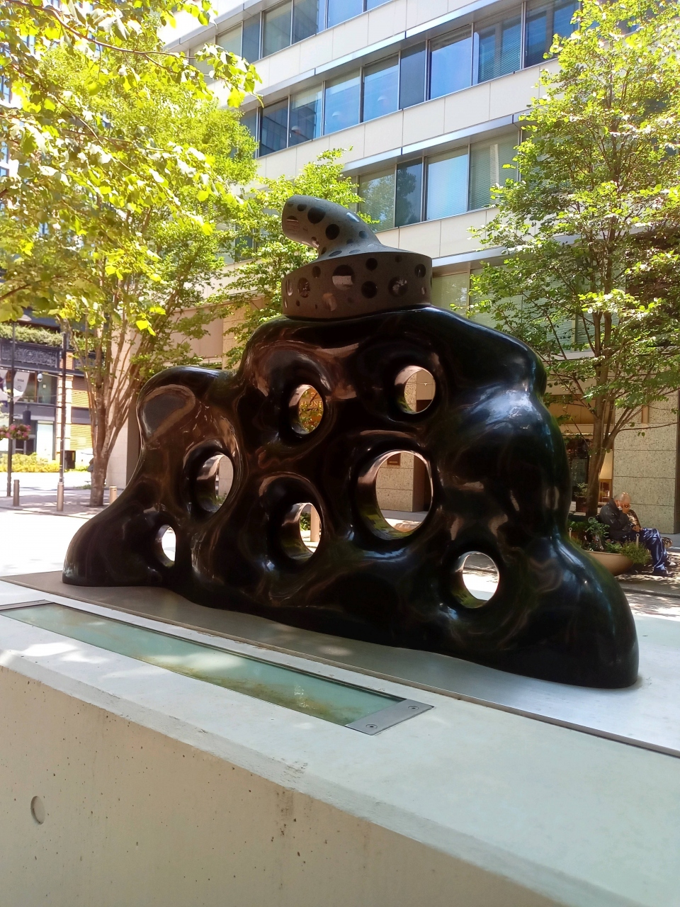 東京・丸の内の『丸の内仲通り』では、『丸の内ストリートギャラリー』が開催されています。丸の内仲通り沿いに数々のアート作品が展示されています。なかには、草間彌生氏の「われは南瓜」という作品もあり、南瓜の作品を初めて石彫で作られた作品だそうです。自身のテーマである「永遠」に例え、半永久的に残る素材「黒御影石」に南瓜(自分)を重ね合わせ、永遠の命を吹き込んだという作品ということです。巨匠の作品を間近で見られるのは凄いです。
