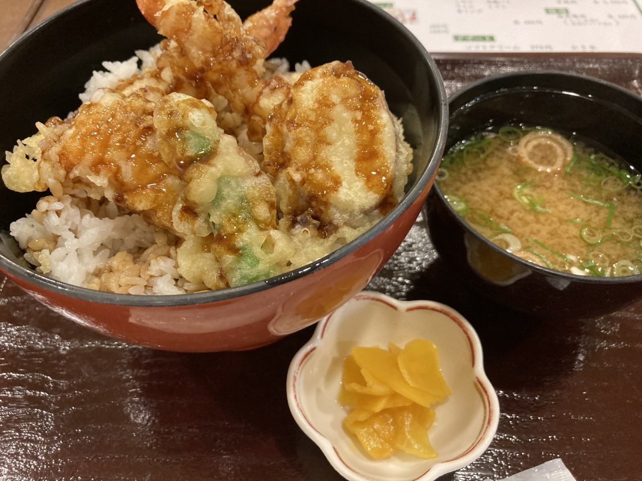 丼ものと麺類が中心のメニューでした。天丼は900円と比較的安めでしたが、とても美味しかったです。