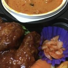 バターチキンカレーなどのカレーに甘辛チキンなどのおかずがセットになって、ナンもついてくるお弁当が美味しそうで夜ご飯にいただきました!