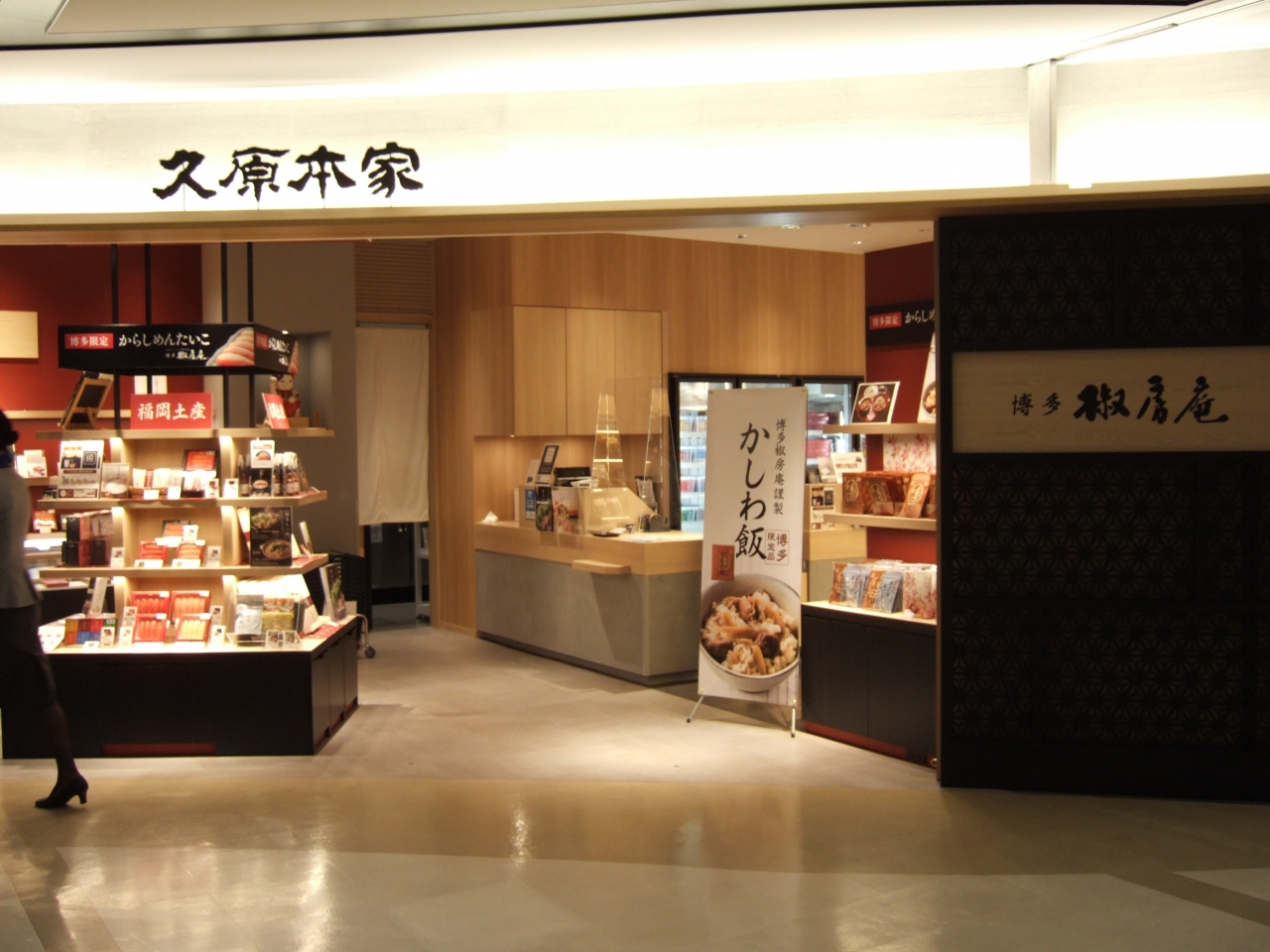 明太子とだしで有名な久原本家が、福岡空港にも出店しています。出発ロビーにも搭乗待合室にもお店があり、とても便利。