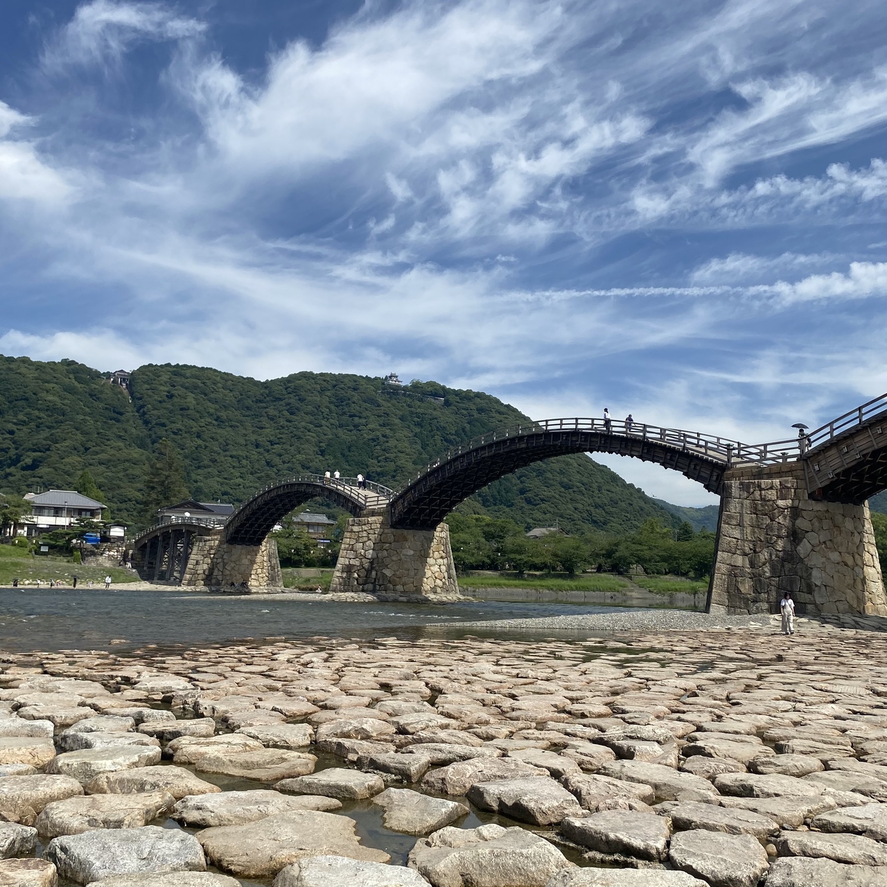 定番の観光スポットと言える場所で、錦川にかかる素敵な橋です。橋は通行料がかかりますが、ロープウェイやお城などとセットになったお得なセットもありました。橋は、階段のようにもなっており、渡りやすかったです。
