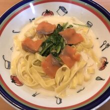 街道沿いにあるイタリア料理店です。子供とランチを摂りました。僕はサーモンとほうれん草のフェットチーネをお願いしました。子供はドリンク飲み放題を付けたのですが、子供料金(80円)と念を押したにも関わらず、大人料金(200円)を請求されました。指摘したら替えてくれましたが、話を聞いてるのかと少しイラッと。料理は普通においしかったです。