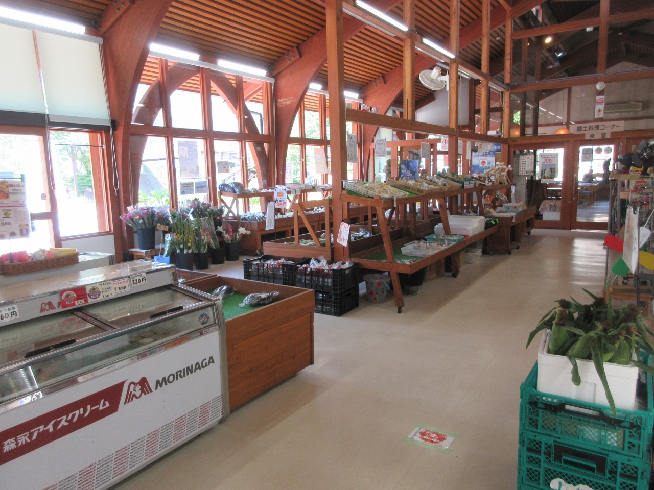 午前中美ヶ原高原に行き、遅めの昼食を食堂でとるために和田宿ステーションに寄りました。道の駅と名付けられていませんが、道の駅にある特産物直売所と同じ感じでした。地元の米や野菜や切り花、土産物食品、手作りお手玉やマスクなどがありました。特徴は鹿の角と畑のモグラ除け風車が売られていたことです。迫力ある鹿の角が印象的でした。