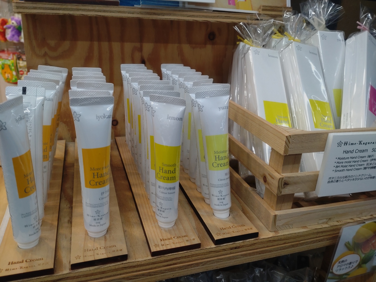 松山空港の搭乗口Dの近くにある店舗です。以前、別の場所で購入して気に入った柑橘系の香りがするハンドクリームが置いてありました。愛媛らしくてとてもいいです。アルコール消毒のしすぎで手がカサカサするので必需品です。