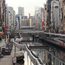 太左衛門橋は大阪・ミナミの道頓堀川にかかる橋です。1本西側には有名な戎橋があり、1本東側には相合橋があります。写真は戎橋から撮影しました。最寄りの駅は大阪メトロや近鉄電車などのなんば駅か日本橋駅です。