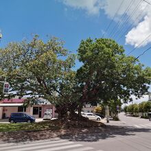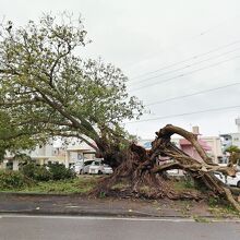 市街地のとある五差路に立つオオバアコウの巨木。石垣市の指定文化財にも指定されています。樹齢は200年~250年とも。昔から道しるべとして、また人々の憩いの場として親しまれ、一番から五番まであったそうですが現在はこの「三番アコウ」のみが残っています。